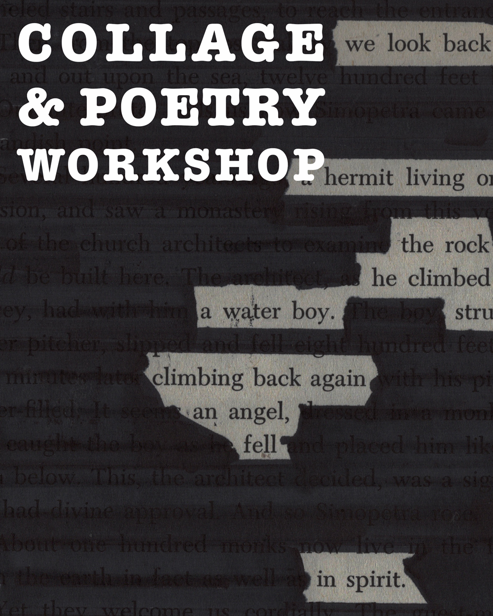 Since 2018, Kolaj Institute has investigated the intersection of Poetry and Collage through a series of artist residencies that resulted in the journal, PoetryXCollage. Now in its eighth volume, in the periodic journal of artwork and writing, we are interested in found poetry, blackout poetry, collage poems, haikus, centos, response collages, response poems, word scrambles, concrete poetry, scatter collage poems, and other poems and artwork that inhabit this world. In 2026, Kolaj Institute is presenting its first exhibition of artwork from the intersection of Poetry and Collage, "Fragment as Verse". In the exhibition, we consider the role fragment plays in both mediums and how artwork at the intersection operates on the gallery wall. Using the exhibition as a point of departure, participants in this workshop will dive into Kolaj Institute's material library and make collage at the intersection of Poetry and Collage. We will talk about and make black out poems, found word poems, and a collaborative scanograph poem. The workshop will be led by Kolaj Institute Director Ric Kasini Kadour.